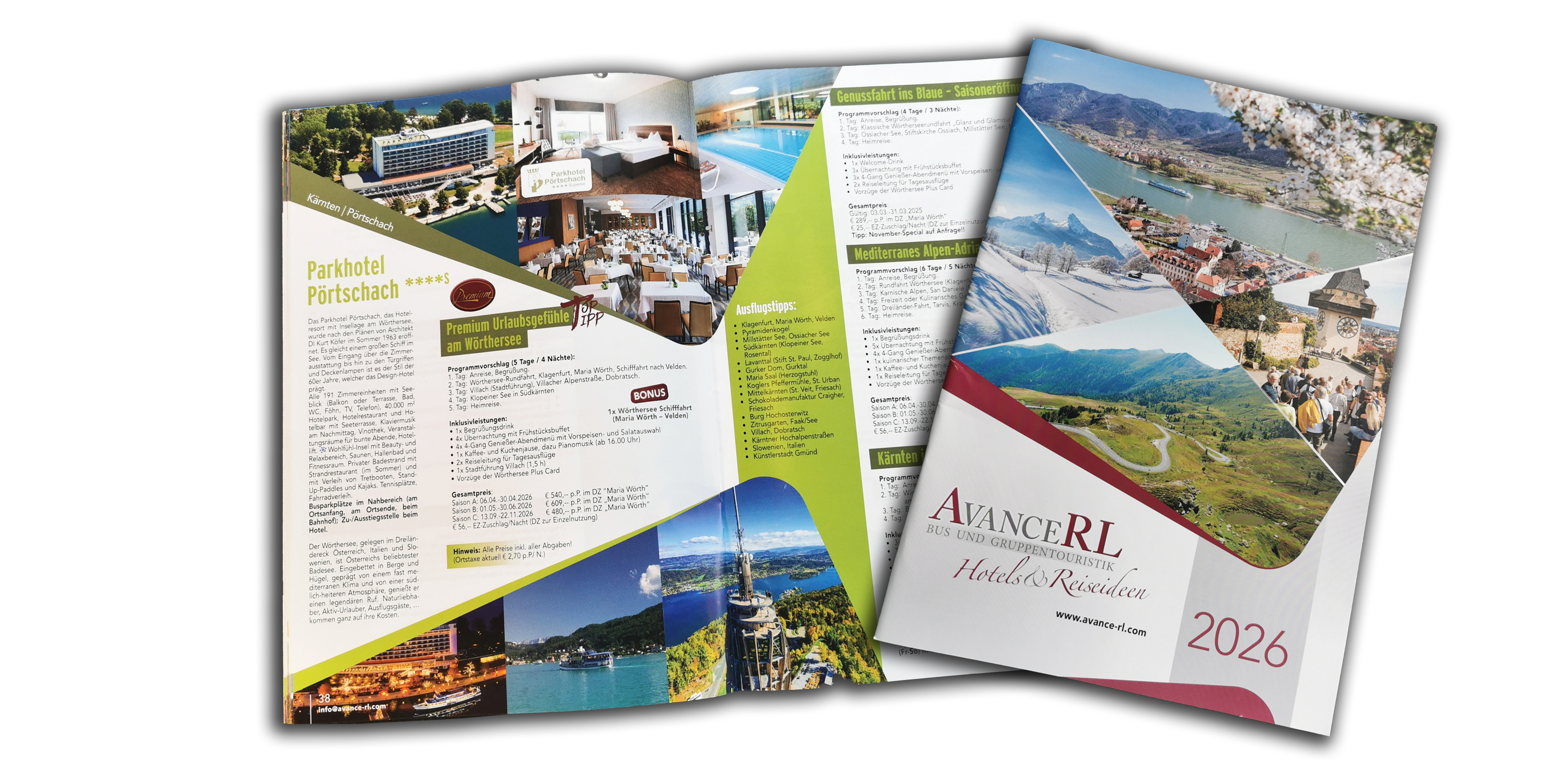 Im übersichtlichen Katalog „Hotels & Reiseideen“ finden Sie neben den Fakten zu den Partnerhotels auch das besondere Gruppenarrangement des Hauses und verschiedenste Themenpackages (z.B.: Eröffnungsfahrt, Ostern, Muttertag, Rundreisen, Adventfahrten) – selbstverständlich mit Programmvorschlag.